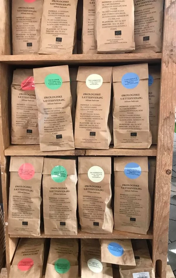 Økologiske sættehvidløg er en sæson vare og sælges til efteråret.